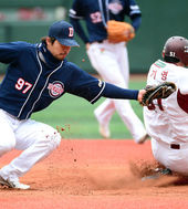 2013.03.22 14: 56오재원-장기영,'아웃이냐? 세이프냐?'