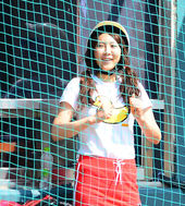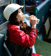 2013.03.23 13: 49LG 배트걸 김민지,'오랜만에 뛰었더니 목 마르네'