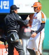 2013.03.23 13: 57간발의 차 태그아웃되는 최진행