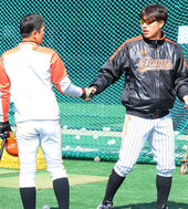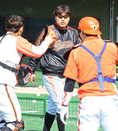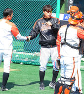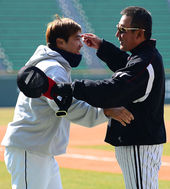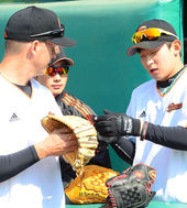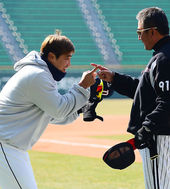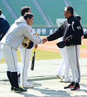 2013.03.23 10: 44홍성흔,'김기태 감독과 손가락 하이파이브!'