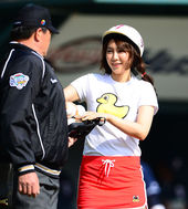 2013.03.23 15: 07LG 배트걸 김민지,'헬멧을 고정시킬 방법이 없을까?'