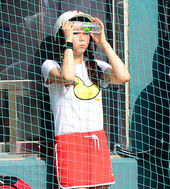2013.03.23 15: 29LG 배트걸 김민지,'물병으로 햇빛 좀 가려보자'