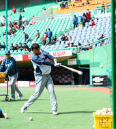 2013.03.24 12: 31이호준,'친정 팬들 앞에서 타격연습'