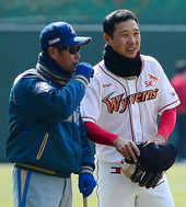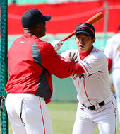 2013.03.24 12: 11정근우,'맥스 배너블 코치님! 이렇게요?'