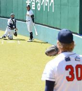 홍성흔,'올슨! 제대로 던져보라고'