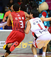 2013.03.28 20: 16전태풍 팔꿈치에 가격당하는 김태술