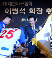 2013.03.28 14: 41협회기 전달받는 대한야구협회 이병석 회장