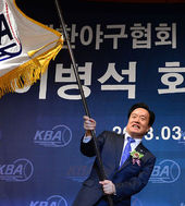 2013.03.28 14: 41협회기 휘날리는 대한야구협회 이병석 회장