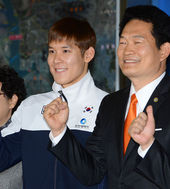 2013.03.28 13: 57송영길 인천시장,'마린보이 박태환 입단 흐뭇한 미소'
