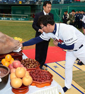 2013.03.28 10: 06우승 및 안전 기원제 지내는 황병일 수석코치