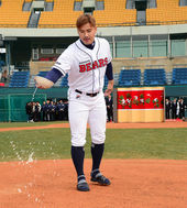 2013.03.28 09: 34마운드에 막걸리 뿌리는 캡틴 홍성흔