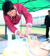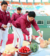 2013.03.29 09: 44염경엽 감독,'정성껏 떡을 썰고'