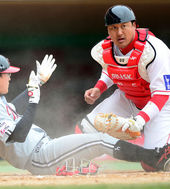 문선재, '동점 슬라이딩, 내가 빨랐어'