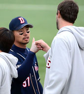 2013.03.30 17: 54오재원,'니퍼트, 오늘 정말 좋았어'