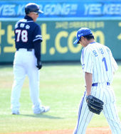 2013.03.31 15: 32마운드 내려가는 윤성환,'오늘은 안되겠어'