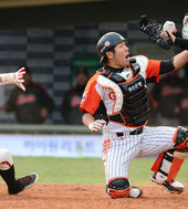 강민호,'태그 했다고요!'
