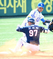 2013.03.31 14: 42만루 홈런의 사나이 오재원,'오늘은 발로 첫득점'