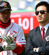 2013.03.31 11: 57김재현-김강민, '선수와 해설자로 만났네요'