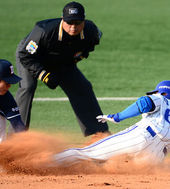 2013.03.31 17: 002루심의 아웃 판정에 고개 떨구는 배영섭