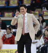 흐뭇한 미소 문경은 감독,'오늘 경기가 잘 풀리는데'