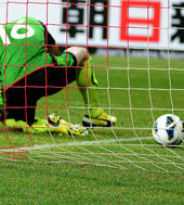 센다이 하야시 골키퍼, '다리 사이에 있던 볼이'