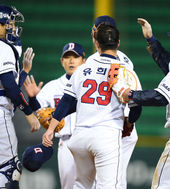 2013.04.02 21: 46김성배-용덕한,'부창더비, 승리의 하이파이브!'