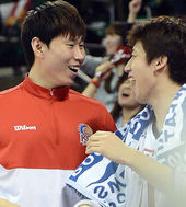 2013.04.03 20: 28오세근-양희종,'승리 예감, 즐거운 미소'