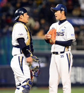 2013.04.03 20: 44김태군,'코치님과 하이파이브!'