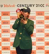 2013.04.05 18: 05김경분, 우승 트로프에 입 맞추며