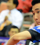2013.04.06 13: 32공을 향해 몸날리는 정영식과 왕하오