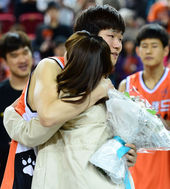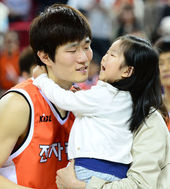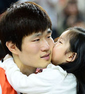 2013.04.06 16: 42은퇴 강혁,'사랑하는 딸에게 받는 코트 위 볼키스'