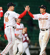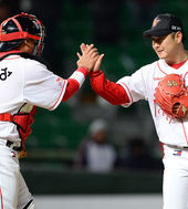 2013.04.09 21: 13송은범-조인성,'연승 분위기 내일도 이어가자고'