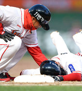 2013.04.10 18: 56강정호-이명기,'세이프? 아웃?'