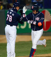 '투런포' 양의지, 세리머니는 '뺘샤~'