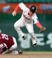 2013.04.11 19: 38정근우,'공이 뒤로 빠졌네'
