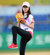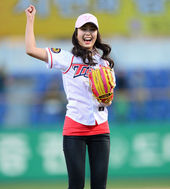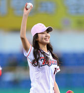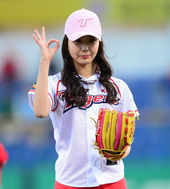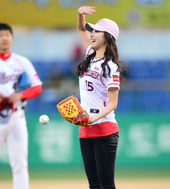 2013.04.11 19: 14두번째 시구 나선 이정빈, '좋아서 깡총깡총'
