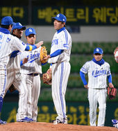 2013.04.11 21: 37'5연승 기쁨을 나누는 삼성 라이온즈'