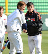 2013.04.12 16: 14홍성흔-손아섭, '팀은 달라졌지만 우정은 여전~'
