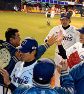 2013.04.13 19: 22송신영,'위기 넘기고 하이파이브'