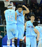 2013.04.13 16: 01환호하는 모비스, '경기는 4쿼터 부터'