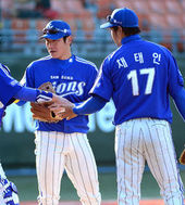 2013.04.14 17: 51채태인-조동찬,'기분좋은 승리'
