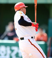 2013.04.14 14: 33김태균, '악! 허벅지에 공이'