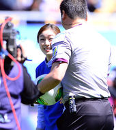 2013.04.14 14: 12김연아,'시축 후 멋쩍은 웃음'