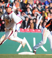 2013.04.14 17: 24황재균 송구에 홈 질주하는 오재원