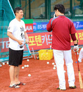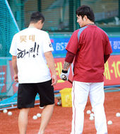 2013.04.16 17: 59황재균,'병호형! 우리 유먼 선물 어때?'
