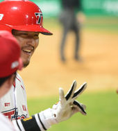 2013.04.17 20: 29솔로포 터트린 최희섭의 'OK' 세리머니