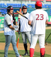 2013.04.17 17: 04박용택-이진영-최희섭, '화기애애한 대화'