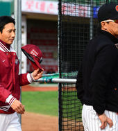 2013.04.18 16: 45송진우 코치,'배팅볼 한 번 던져볼까?'