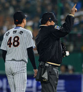 2013.04.18 21: 06문승훈 구심,'더 이상 사사구는 용납 못해'
