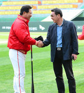2013.04.19 17: 04전임 신영철 사장과 악수 나누는 이만수 감독